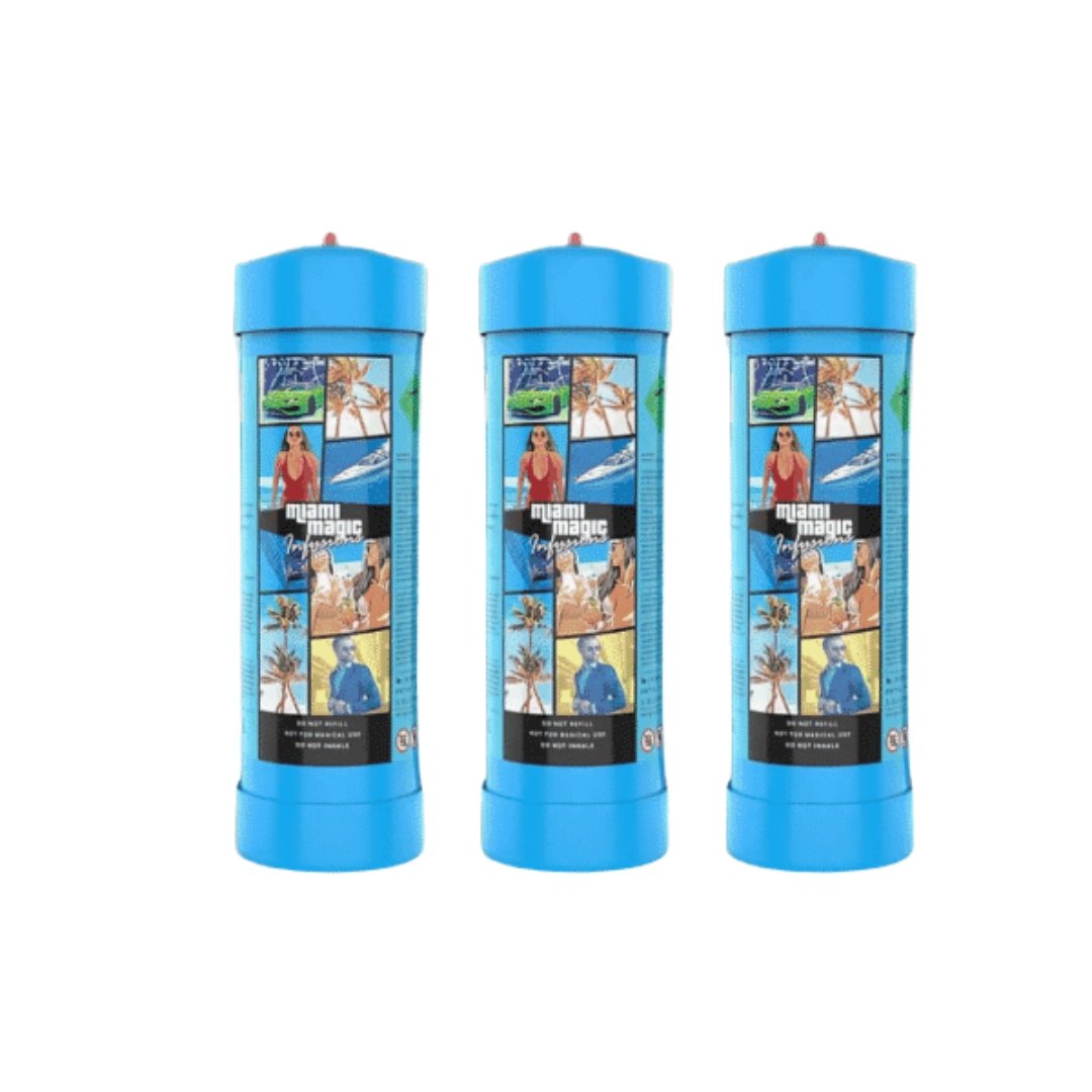 Each MIAMI tank contains 3.3 liters of high-purity nitrous oxide (N₂O), and this triple-pack delivers a whopping total of 9.9L, perfect for commercial kitchens, home bakers, event caterers, or whipped cream enthusiasts who want long-lasting performance and reliable results.